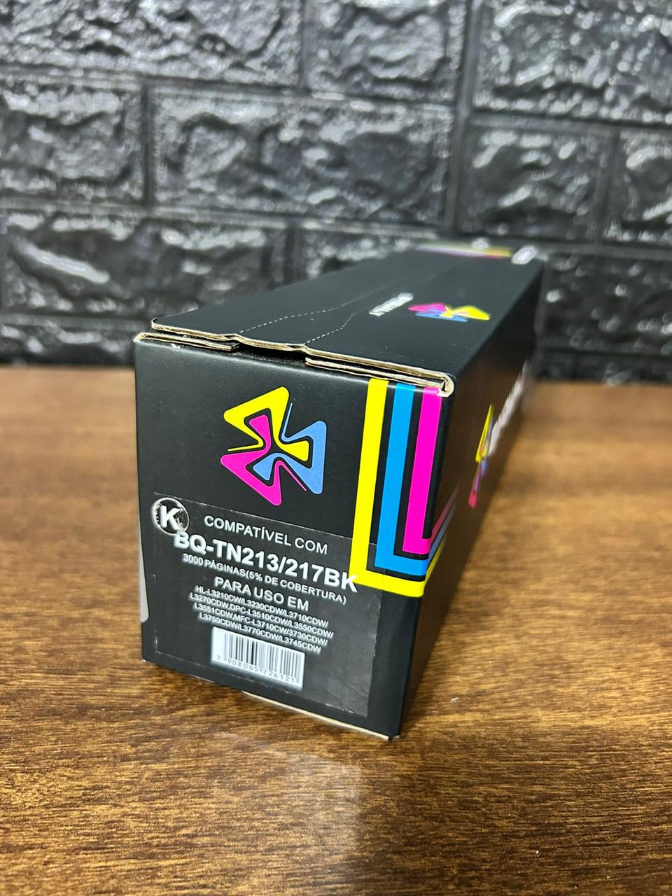 Cartucho de toner compatível TN213/TN217, oferecendo excelente qualidade de impressão e rendimento médio de 3.000 páginas com 5% de cobertura em papel A4.